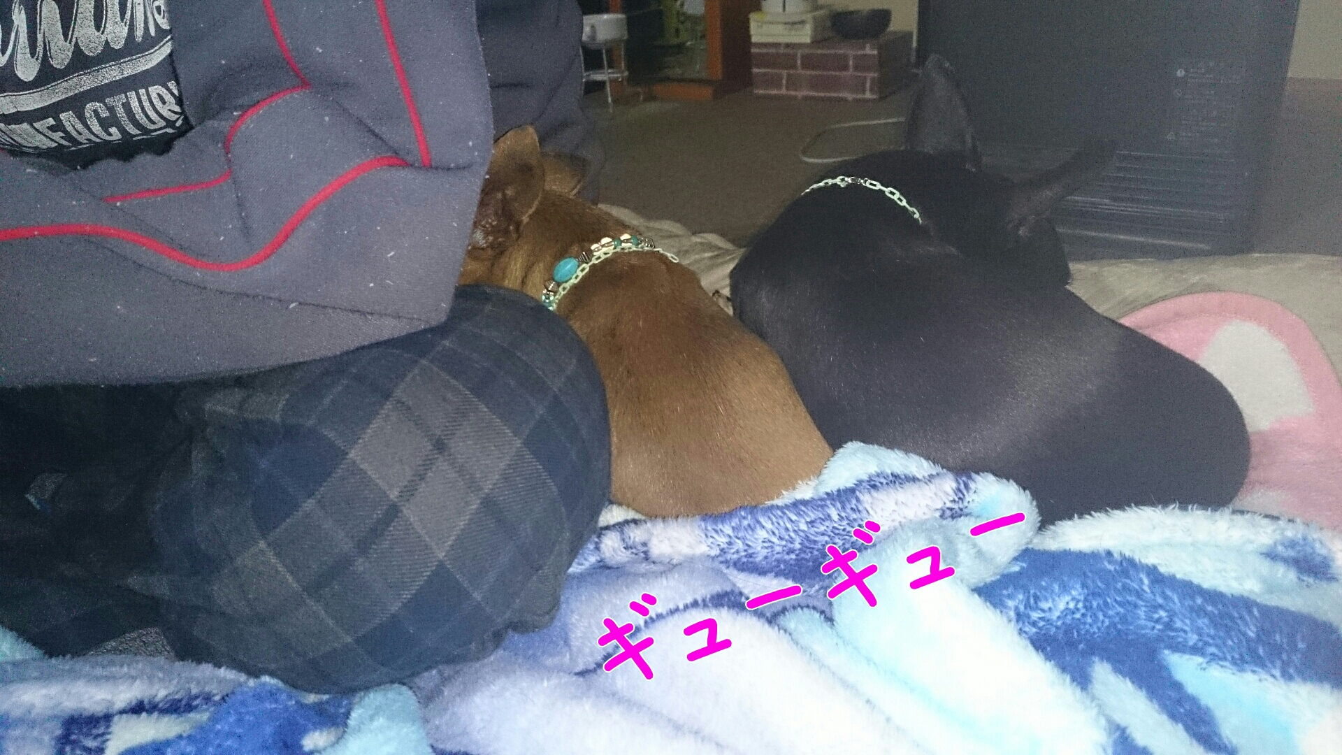 狭いヒーターの前でギューギューにひしめき合う、