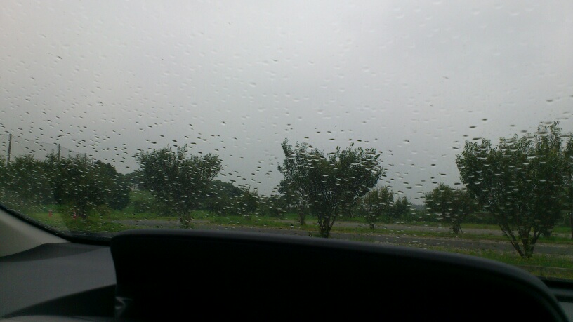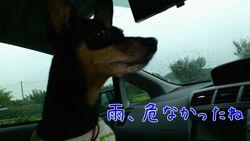仕方ないので、車に戻ってふたりを乗せた途端に大粒の雨にかわった~!